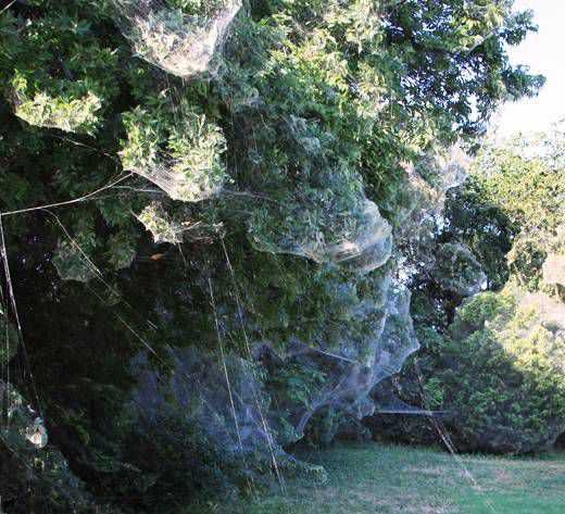 Между тем, как сообщает Metro, в пригороде Далласа в штате Техас энтомолог Майк Мерчант обнаружил аномальную паутину.