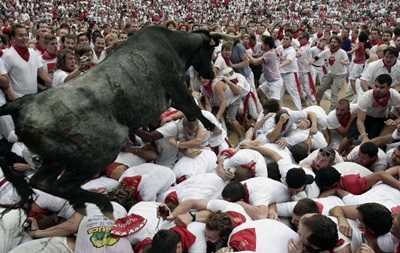Несчастные случаи регулярно происходят во время энсьерро – испанского национального обычая, состоящего в убегании от выпущенных на улицу быков.