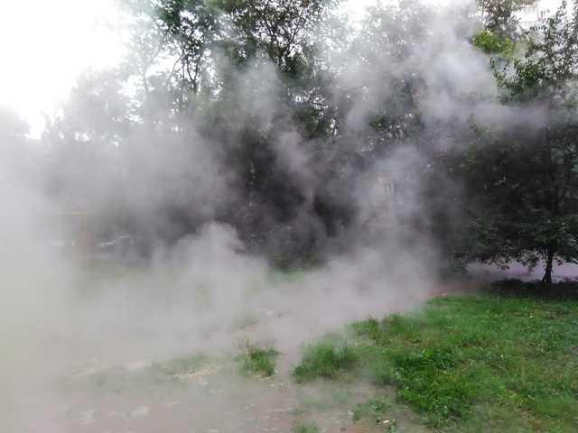 В центре Екатеринбурга на улице Шевченко сегодня утром прорвало тепломагистраль – кипяток бил огромным фонтаном, залив придомовую территорию и детскую площадку.