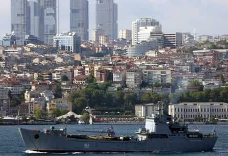20 августа через Босфор прошел большой десантный корабль "Николай Филченков",под завязку наполненный боевым снаряжением. На палубе стояли военные КАМАЗы и бронетранспортеры, закрытые маскировочными сетями, тип которых по имеющимся фотографиям определить невозможно.