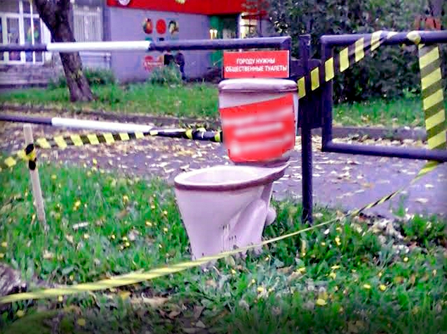Организатор акции – общественное движение «Чистый город». «Мы знаем, что выделяются большие деньги на поддержание порядка, но этого порядка нет», – говорят активисты. «Главный лозунг инсталляций – Городу нужны общественные туалеты!».