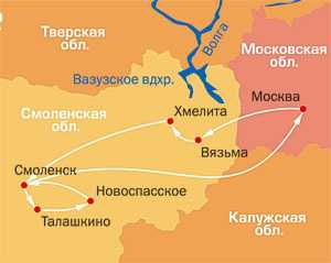 Известно, что в июле 1941 года, накануне взятия Смоленска фашистскими войсками, из местного отделения одного из банков на 7-8 грузовиках попытались вывезти драгоценности – золото и серебро в слитках, монетах и ювелирных изделиях, а также другие драгоценности. Колонна ушла в сторону Москвы. Но на полпути, под Вязьмой, во время переправы через Днепр в окрестностях села Соловьево, конвой был обстрелян. Прямым попаданием был взорван один из грузовиков, из которого по округе разлетелись серебряные монеты (их якобы в большом количестве находили потом «черные археологи»).