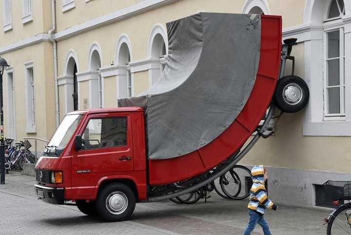 Автомобиль-памятник установленный в честь 300-летнего юбилея города Карлсруэ, Германия, недавно был оштрафован за парковку в неположенном месте.