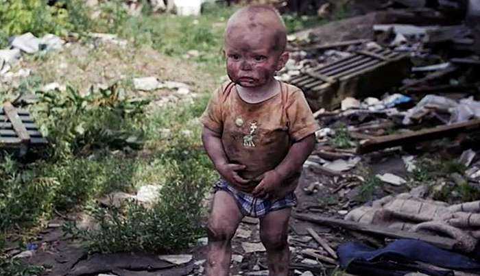 «Это фото сейчас усиленно форсят в вконтактике и одноквасникам с подписью, что это «ребенок из Донбасса после бомбардировки разыскивает свою погибшую мать». На самом деле этого малыша намазали сажей и пустили гулять по руинам ради съемок вот этого г*вноклипа», - отметил блогер в описании к следующей фотографии.