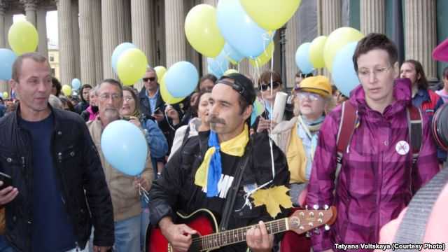 Во время народного схода у Казанского собора его участники пели украинские песни.