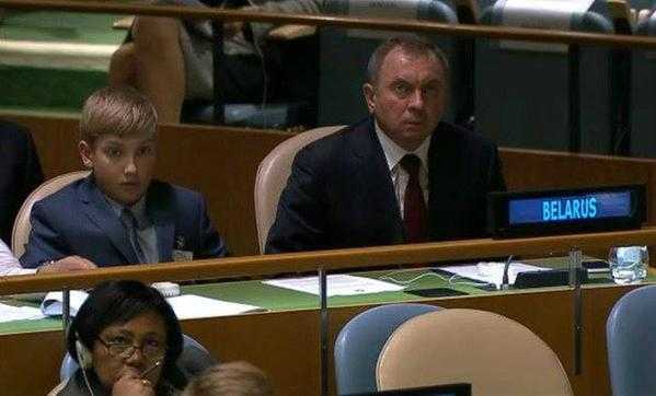 Как объяснил московский корреспондент The Guardian Шон Уокер, который тоже выложил это фото, на нем изображен 11-летний сын президента Белоруссии Александра Лукашенко. Николай занял одно из мест, предназначенных для официальных делегатов от страны и, по всей видимости, входит в их число, раз смог попасть в зал заседаний ООН.