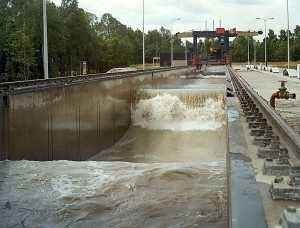 Как видно из видео, конструкция Delta Flume сделана в виде желоба длиной 300 метров, высотой 9,5 метра и шириной 5 метров.