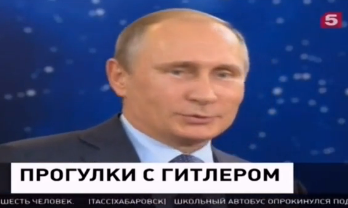 В новостной программе «Сейчас» петербургского «Пятого канала» случайно скрестили сюжеты про актера, играющего Гитлера, и встречу Владимира Путина с учителями.