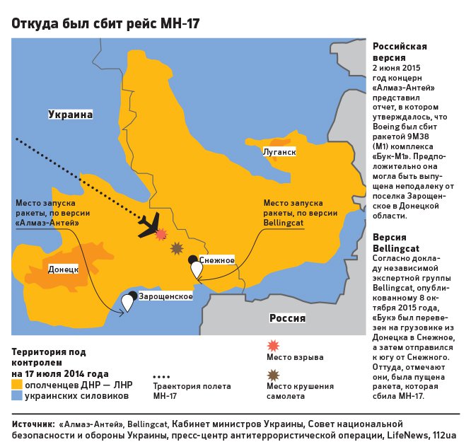 В день годовщины катастрофы свой доклад представил производитель «Буков» «Алмаз-Антей». Российские эксперты согласились с доводами о том, что самолет мог быть сбит из «Бука». Но, по их данным, ракету выпустили из подконтрольного украинским силовикам района. Сама же ракета, утверждали специалисты, в России не используется, поскольку была снята с производства 15 лет назад.