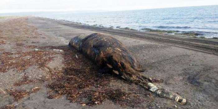 Местные жители, нашедшие непонятный объект на берегу, сообщили в соответствующие службы. Существо напоминает небольшого кита. Интересную находку сняли на видео и выложили в Сети.