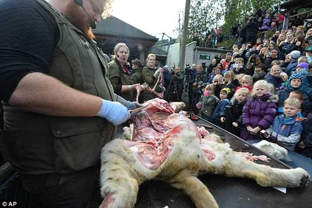 Зоопарк в датском городе Оденсе (в 170 километрах от Копенгагена) оказался в центре скандала. Сотрудники учреждения на глазах публики препарировали самку льва, убитую несколько месяцев назад, пишет The Daily Mail.