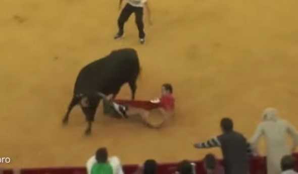 Сама коррида проходила в Сарагосе в Испании. Во время начала действа на арену неожиданно выбежал мужчина в красной кофте. Бык сразу обратил на него внимание и побежал вслед за посетителем.