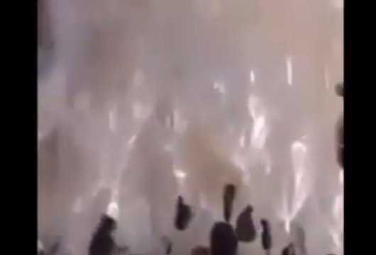 Еще один отрывок видеозаписи демонстрирует десятки «резиновых средств ПВО» связанных в линию и ожидающих своей очереди перед запуском. Ролик заканчивается демонстрацией сотен летящих в небе бомб.