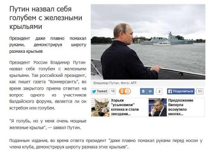 "Я голубь, но у меня очень мощные железные крылья", - ответил Путин.