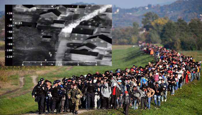 Появились невероятные фотографии ночного видения, которые показывают, как тысячи мигрантов потоком проходят через Словению в Хорватию.