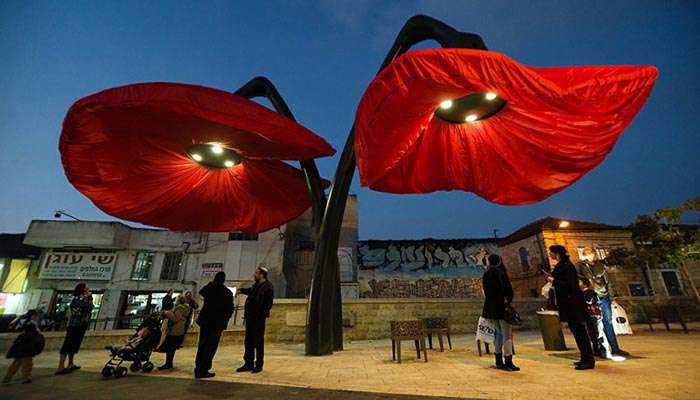 Центр столицы Израиля отныне украшают гигантские цветы, которые реагируют на появление людей.