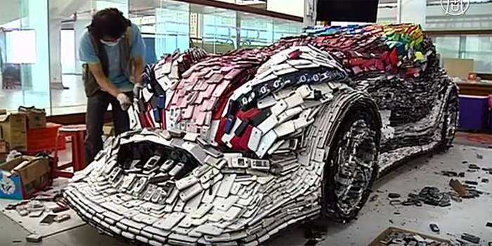 Лень Шибао – художник из Тайваня создал автомобиль со старых мобильных телефонов. По словам конструктора, он работал над моделью 4 месяца. Лень Шибао считает, что его работа – объект современного искусства.