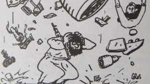 На первой карикатуре были изображены тела и обломки самолета на голову террориста.
