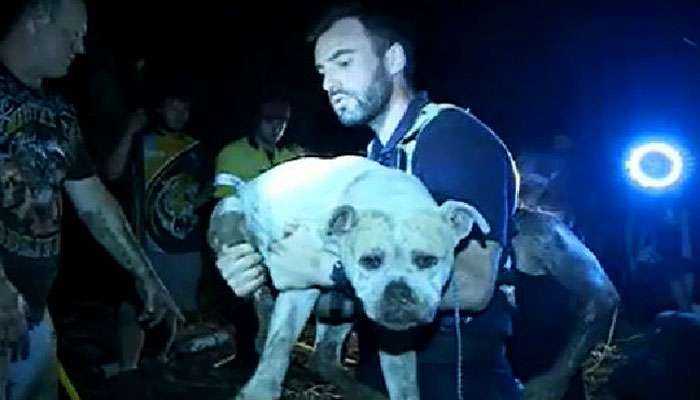 Таким образом, вчера вечером им все-таки удалось откопать бульдога, который весит 42 кг.