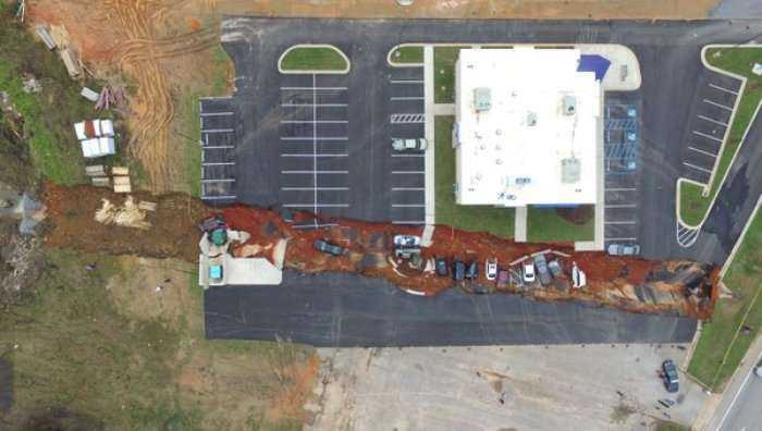 В американском городе Меридиан произошел обвал земли. Вследствие этого 12 автомобилей, которые находились на парковке, ушли под землю.