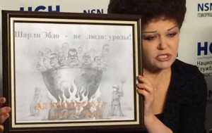 Российский сенатор Валентина Петренко опозорилась, показав украденную карикатуру о французской газете Charlie Hebdo, которую во время Майдана нарисовал украинский художник Юрий Журавель и «посвятил» ее Януковичу и Путину, а также их приспешникам.