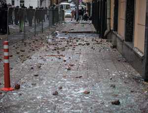 После атаки около здания посольства много камней и битого стекла. Окна здания разбиты, повсюду следы краски, передает «Мослента». Рядом с диппредставительством дежурит несколько нарядов полиции, перекрыты подходы к зданию.