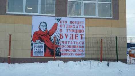 В связи с ситуацией в результате которой был сбит бомбардировщика ВВС РФ, россиян охватила антитурецкая истерия. Так, в российском городе Салехарде на фасаде торгового центра появился плакат призывающий россиян не ехать в Турцию.