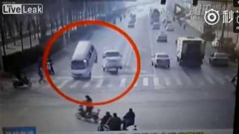 В Китае произошло странное ДТП, во время которого без видимых причин три машины подбросило в воздух.