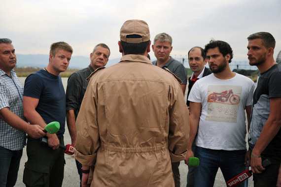 Во-первых, поведение журналистов чересчур спокойное, несмотря на то, что перед ними стоит живая легенда, пережившая такие волнующие события. Они не перебивают пилота, хотя этому виду деятельности свойственны подобные действия.