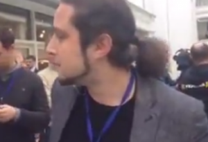 Молодой человек после Климатической конференции с упорством пытается добиться ответа на свой вопрос о поддержке Турцией террористов группировки ДАИШ от турецкого президента.