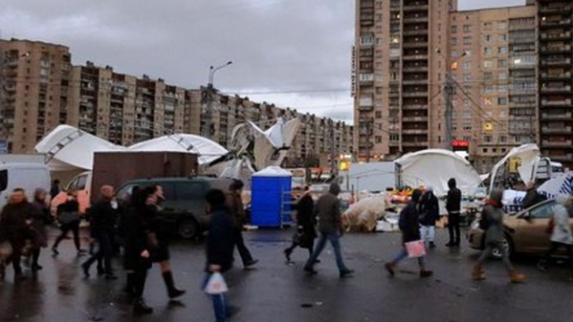 На территории Санкт-Петербурге метеорологи объявили штормовое предупреждение. Сообщается, что уже сейчас шквальный ветер обрушил палаточный рынок.