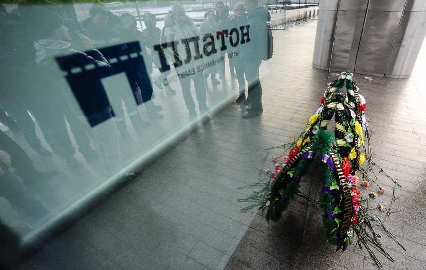 В Москве протестующие дальнобойщики похоронили систему «Платон». У главного офиса на Ленинградском шоссе появились траурные венки.