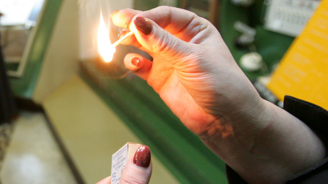 Сотрудники московской полиции пытаются утихомирить жительницу столицы, которая облила себя бензином и угрожает сжечь себя на лестничной клетке.