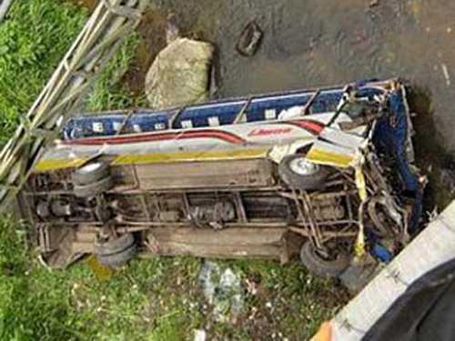 Как сообщается, автобус двигался в составе колонны, затем перевернулся и упал с моста. Что стало причиной падения, пока неизвестно.