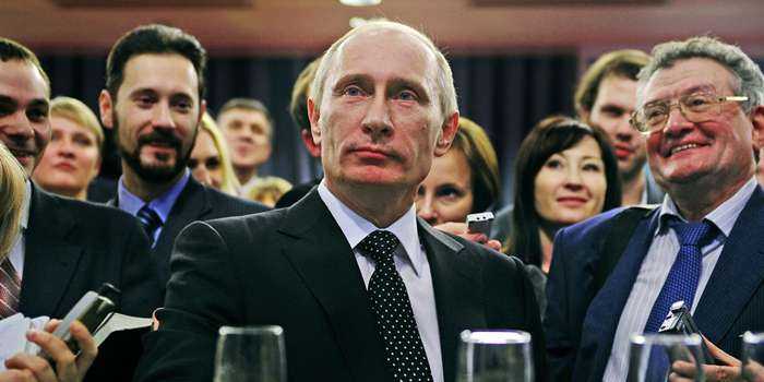 Слышно, как местные жители поют известную песню о президенте Российской Федерации.