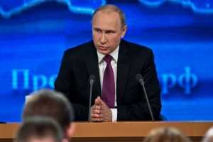 На ежегодной пресс-конференции, посвященной итогам года, президент России Владимир Путин ответил на первый вопрос анекдотом. Владимир Путин не слишком оптимистично оценил экономическую ситуацию в России, оценив ситуацию с черными и белыми полосами.