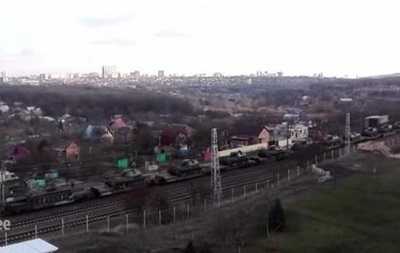 В российском Ростове заметили направляющийся в сторону украинской границы поезд, перевозивший танки, передает телеканал "Настоящее время", опубликовав видео.