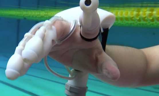 Если сонар обнаружил препятствие, то Arduino при помощи насосов подает воду через трубки, подведенные к отдельным пальцам. Вода, подаваемая к пальцам, давит на кожу, поэтому пользователь ощущает физическое ощущение давления. Чем ближе рука пользователя будет поднесена к выступающему со дна предмету, тем сильнее будет напор воды, подаваемой через трубки.