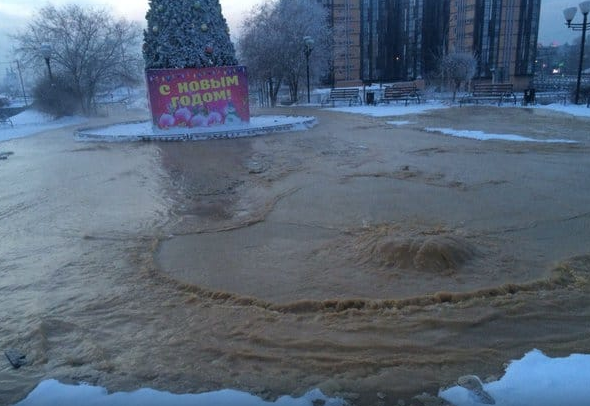Судя по попавшему в Интернет видео, настоящий фонтан из фекалий "забил" в центре города, на главной праздничной площади у расположившегося неподалеку драматического театра.