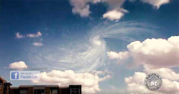 В сети появилось видео странного явления, которое наблюдали очевидцы в небе над Женевой. Запись была якобы сделана туристами из Соединенных Штатов Америки, которые отдыхали в Швейцарии. Она демонстрирует возникновение огромного вихря в дневном небе, а также движение белой сферы, влетающей в него.