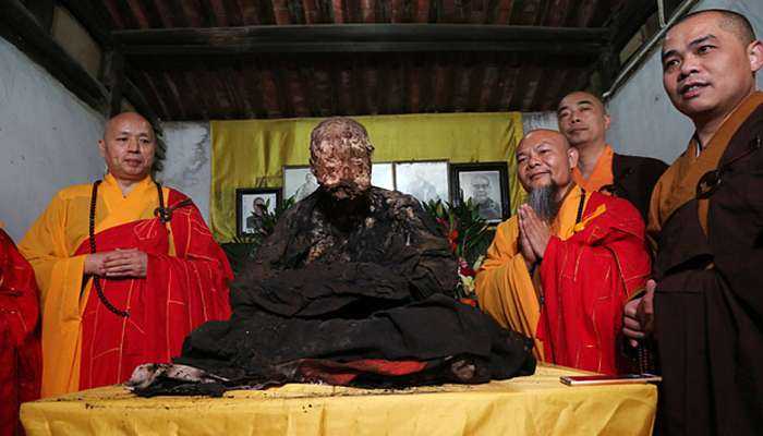 В Китае открыли контейнер с телом почтенного монаха, который умер 3 с половиной года назад. Китайцы удивились, ведь тело почти не разложилось.