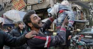 По информации местной самообороны, российские истребители атаковали рынок и больницу в Эль-Sokkari районе, который контролируется силами оппозиции и убили семь человек, в том числе и детей.