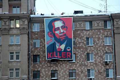 На жилом доме напротив посольства США в Москве вывесили плакат с надписью «Obama killer №1» и портретом американского президента. Баннер разместили на доме №18 на Новинском бульваре утром в среду, 27 января, сообщают слушатели «Русской службы новостей».