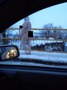 Фотографии "нудистки" были опубликованы в группе "Типичный Саратов" в соц.сети VKontakte. По словам Дениса Кобзоря, даму в костюме Евы он заметил в 7:50 на мосту, ведущему к 1-му жилучастку в Заводском районе.