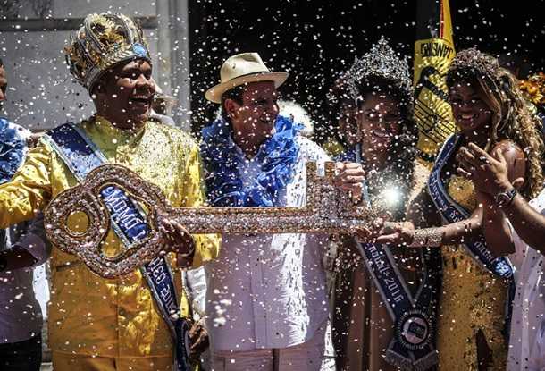 Мэр Эдуарду Паэс передал символический ключ от города королю Момо, которого ежегодной выбыриают путем кастинга со специальным жюри.