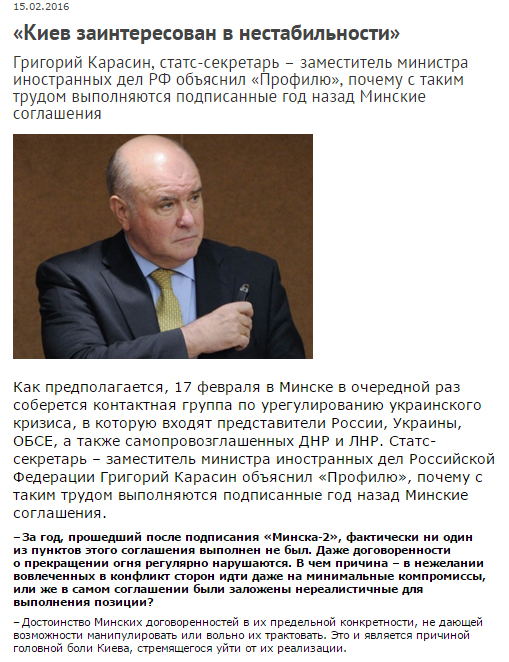 Он также обвинил власти Украины в попытке избежать реализации всех пунктов минских соглашений. По мнению российского чиновника, максимально выполняется лишь договоренность о работе контактной группы и четырех рабочих подгрупп. Кстати, Карасин в очередной раз заявил, что "жители Донбасса" опасаются, что Киев обманет их и после выборов в "Л/ДНР" боевиков ожидают аресты и преследования. При этом не уточнил, какое наказание получат граждане РФ, принимающие участие в военном конфликте в чужой стране.