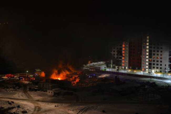 Огонь уничтожил строительные бытовки вблизи многоэтажек.