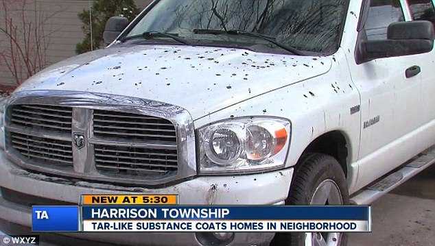 Жители одного из городов в Мичигане недоумевают, после того как дегтеобразное вещество обрушилось на их автомобили, подъезды и проезжую часть на этой неделе. Черное, маслянистое вещество обнаружили, по крайней мере, на шести дорогах в городе Гаррисон в воскресенье, и несколько дней спустя, что это за материал по-прежнему остается загадкой. Сотрудники департамента экологии собрали образцы вещества.
