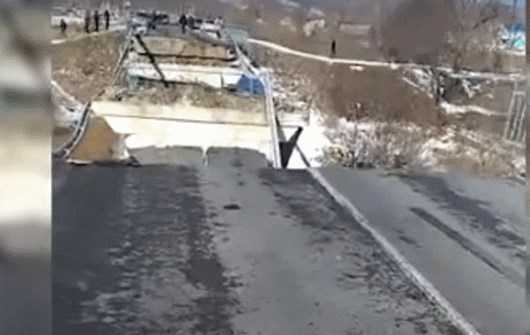 «Обрушение произошло около 05:30 мск на 127 км. трассы Владивосток - Находка. Обрушились два пролета бетонного моста в селе Новолитовск через речку Литовка», - пояснили в ведомстве.