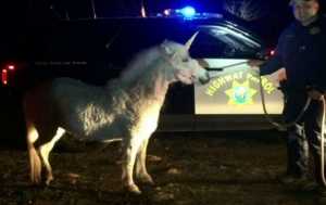 Поначалу полицейские решили, что люди, которые сообщали о единороге находятся под действием наркотиков. Но приехав на место происшествия, полицейские обнаружили пони с искусственным рогом.